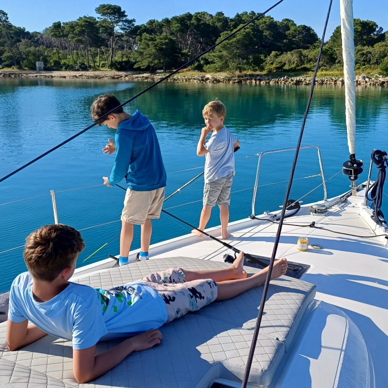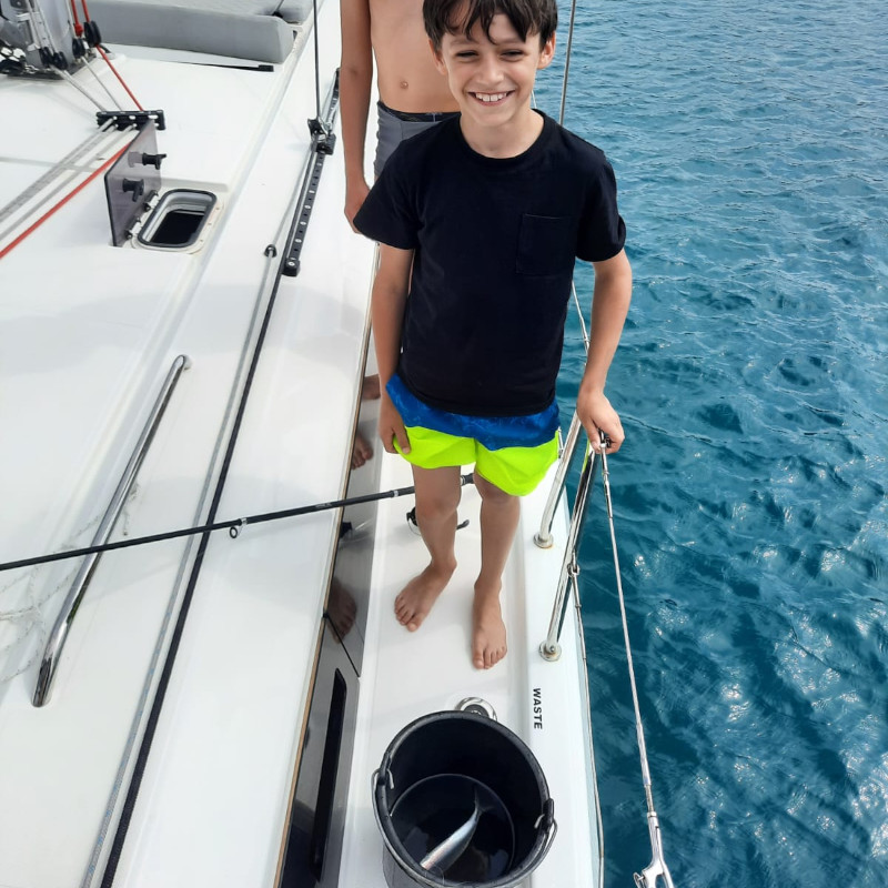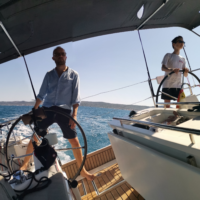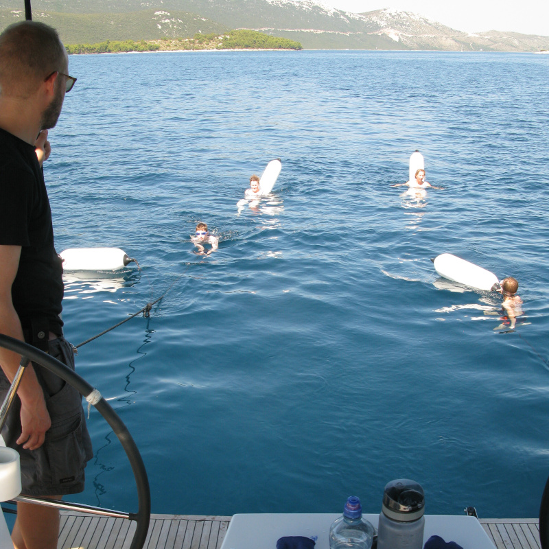 An Bord zeigt Dir unser erfahrener Skipper und Segellehrer Hubert, wie Segeln funktioniert – ganz entspannt und Schritt für Schritt. Du kannst selbst das Steuer übernehmen, Segel setzen oder den Anker werfen. Oder Du chillst einfach in der Hängematte und genießt die Aussicht. Vielleicht lässt Du Dich sogar den Mast hochziehen und hältst Ausschau nach Delfinen 🐬