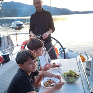 Deine Eltern bringen dich rechtzeitig zum Flughafen. Bereits im Vorfeld besprechen wir gemeinsam, welcher Flug nach Athen (Athen international Airport) gebucht werden soll (die Buchung erfolgt über deine Eltern). Im Flughafen Athen nimmt dich die Betreuerin Bella in Empfang und fährt mit dir und den anderen Jugendlichen gemeinsam zur Marina Alimos (Adresse: Μαρίνα Αλίμου, Alimos 174 55, Griechenland). Dort trefft ihr um ca. 14 Uhr Skipper Hubert und ihr bezieht euren Schlafplatz auf der Segelyacht. Dann geht es auch schon los um die letzten Sachen einzukaufen, so dass alle wichtigen Lebensmittel und Getränke für die ganze Woche an Bord sind. Am nächsten Tag heißt es „Leinen los“ und die Segelreise beginnt.